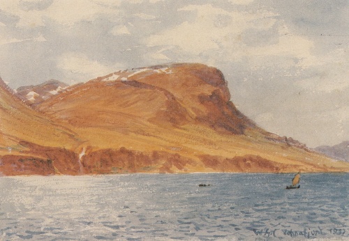 | − | Det Lodmundarfjord mod syd begrænsende næs danner den nordlige begrænsning for den et par mile lange '''Seydisfjord''' (''Seyðisfjörðr''), der i sydvestlig retning skærer sig ind i landet; i Ldn. findes denne fjord benævnt ''Seyðarfjörðr'', i Drpl. ''Sauðarfjörðr''. Fjordnavnet synes, samtidig med at formen ændredes, at have skiftet betydning<ref>Se Drpl. s. 19 n., sml. Sig. Gunnarssön »Örnefni« s. 442 og 465.</ref>. Et større og bredere, ligeledes af høje og stejle fjælde opfyldt næs skiller Seydisfjord mod syd fra Mjovefjorden, der hører til Sønder-Mule syssel, men dog i gejstlig henseende er forbundet med Seydisljord og danner anneks til det herværende sogn. Op fra Seydisfjordens bund strækker sig som sædvanlig en lille dalslette, og desuden udgå fra fjorden mindre sidedale til bægge sider. Ud for fjordbunden hæver sig et ved sit navn mærkeligt fjæld ''Býólfsfjall'' (kortets Bíhólsfjall), der antages benævnt efter fjordens landnamsmand. Lodmunds fostbroder, hvis navn imidlertid i Ldn. har formen ''Bjólfr''. Også Seydisfjord har sin »Fjardarå«, der falder ud i fjordbunden; af andre åer kan mærkes ''Vestdalså'' (-''á''), lidt nordøstligere, nær fjordbunden. Kort øst for Vestdalså, på fjordens nordside, ligger præstegården ''Dværgestén'' (Dvergasteinn, sit navn skylder gården en stor husdannet klippeblok nede ved strandbredden). Inderst i fjorden, ved fjordbunden nær ved gården Fjörðr, ligger handelspladsen ''Seydisfjord'' (Seyðisfjörðr), der siden 1842 har været avtoriseret; her er for tiden to handelsetablissementer. Men desuden findes på nordsiden af fjorden, omtrent en fjærdingvej fra Seydisfjord, et andet handelsetablissement på ''Vestdalsøre'' (Vestdalseyri), der siden 1876 har været avtoriseret handelsplads. Dette etablissement er bygget mellem to grene af Vestdalsåen, der danner grænsen mellem gårdene Fjörðr og Vestdalr; her har i den senere tid sysselmanden i Norder -Mule syssel bot. På ingen af handelspladserne findes derimod nogen læge; distriktslægen bor på en gård i Fljotsdalsherred. Få Seydisfjord har Nordmændene en årrække drevet sildefiskeri, de sidste år med et overordenligt udbytte; også andre fiskerier har i de sidste år taget opsving her i fjorden. Tidligere har man fra Vestdalsøre gjort flere mislykkede forsøg på hvalfanget. Seydisfjord skal være landets fjærde største handelsplads, og fjorden er let, at besejle<ref>Handelspladsen Seydisfjord er, som det vil ses, unøjagtig aflagt på Bj. Gunnlaugssöns kort; de her meddelte oplysninger om etablissementernes beliggenhed og handelsstedets (eller -stedernes) øvrige forhold skyides den tidligere sysselmand i Norder-Mule syssel Böving.</ref>. Blandt gårdene i Seydisfjord kan sluttelig mærkes Brimnes, den yderste gård nord for fjorden, da der i fjældet her oven for findes surtarbrand (brunkul). Paijkull, der har besøgt dette sted, griber lejligheden<ref>En Sommer i Island s. 205.</ref> til at fremhæve den glimrende udsigt fra Brimnæsfjældet over Seydisfjord og Lodmundarfjord; disse snævre fjorde mellem stejle fjældrygge, hvis toppe selv om somren dækkes af sne, medens skrænterne længere nede stå mosgrønne eller græssmykkede, er i følge ham i besiddelse af en ualmindelig skønhed. Også fra Seydisfjord er forbindelsen med omverdenen vanskelig nok. Mod nord og syd fører kun veje for gående til nabofjordene; fra den indre del af fjorden fører derimod nogenlunde brugelige veje til Fljotsdalsherred og ad omveje til de andre fjorde. | + | [[Fil:WGC.312.jpg|thumb|500px|left|<center>''' Skálnesbjarg, Seyísfjörður''' - (''W.G. Collingwood,'' 1897)</center>]]Det Lodmundarfjord mod syd begrænsende næs danner den nordlige begrænsning for den et par mile lange '''Seydisfjord''' (''Seyðisfjörðr''), der i sydvestlig retning skærer sig ind i landet; i Ldn. findes denne fjord benævnt ''Seyðarfjörðr'', i Drpl. ''Sauðarfjörðr''. Fjordnavnet synes, samtidig med at formen ændredes, at have skiftet betydning<ref>Se Drpl. s. 19 n., sml. Sig. Gunnarssön »Örnefni« s. 442 og 465.</ref>. Et større og bredere, ligeledes af høje og stejle fjælde opfyldt næs skiller Seydisfjord mod syd fra Mjovefjorden, der hører til Sønder-Mule syssel, men dog i gejstlig henseende er forbundet med Seydisljord og danner anneks til det herværende sogn. Op fra Seydisfjordens bund strækker sig som sædvanlig en lille dalslette, og desuden udgå fra fjorden mindre sidedale til bægge sider. Ud for fjordbunden hæver sig et ved sit navn mærkeligt fjæld ''Býólfsfjall'' (kortets Bíhólsfjall), der antages benævnt efter fjordens landnamsmand. Lodmunds fostbroder, hvis navn imidlertid i Ldn. har formen ''Bjólfr''. Også Seydisfjord har sin »Fjardarå«, der falder ud i fjordbunden; af andre åer kan mærkes ''Vestdalså'' (-''á''), lidt nordøstligere, nær fjordbunden. Kort øst for Vestdalså, på fjordens nordside, ligger præstegården ''Dværgestén'' (Dvergasteinn, sit navn skylder gården en stor husdannet klippeblok nede ved strandbredden). Inderst i fjorden, ved fjordbunden nær ved gården Fjörðr, ligger handelspladsen ''Seydisfjord'' (Seyðisfjörðr), der siden 1842 har været avtoriseret; her er for tiden to handelsetablissementer. Men desuden findes på nordsiden af fjorden, omtrent en fjærdingvej fra Seydisfjord, et andet handelsetablissement på ''Vestdalsøre'' (Vestdalseyri), der siden 1876 har været avtoriseret handelsplads. Dette etablissement er bygget mellem to grene af Vestdalsåen, der danner grænsen mellem gårdene Fjörðr og Vestdalr; her har i den senere tid sysselmanden i Norder -Mule syssel bot. På ingen af handelspladserne findes derimod nogen læge; distriktslægen bor på en gård i Fljotsdalsherred. Få Seydisfjord har Nordmændene en årrække drevet sildefiskeri, de sidste år med et overordenligt udbytte; også andre fiskerier har i de sidste år taget opsving her i fjorden.