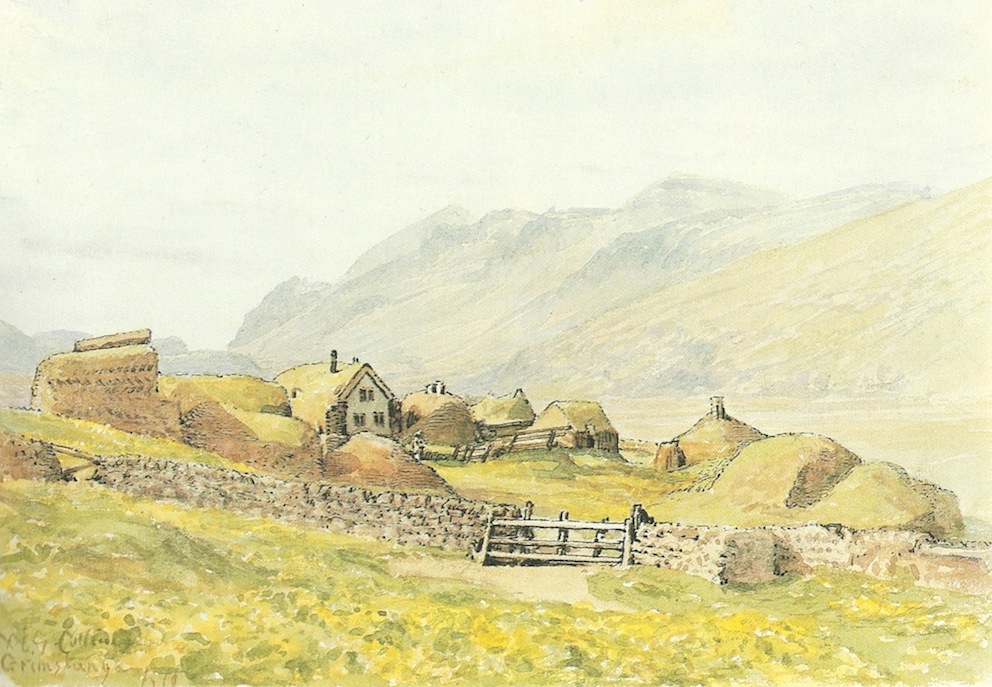 Grímstunga i Vatnsdalur. Illustration af W.G. Collingwood, (1854-1932). Kilde: Fegurð Íslands og fornir sögustaðir