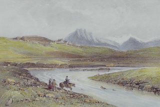 Miðdalur í Mosfellssveit. Illustration af A. E. F. Mayer, (1805-1890). Kilde: Íslandsmyndir Mayers 1836
