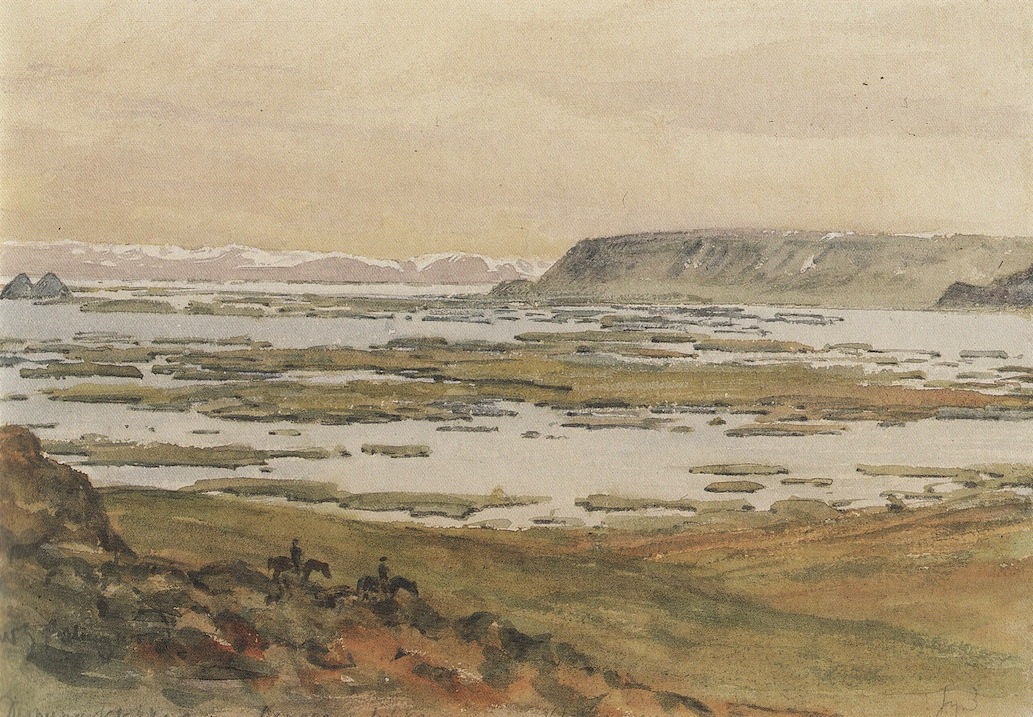 Mynni Hvammsfjarðar. Illustration af W.G. Collingwood, (1854-1932). Kilde: Fegurð Íslands og fornir sögustaðir