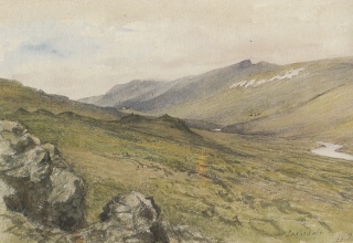Laxárdalur. Illustration af W.G. Collingwood, (1854-1932). Kilde: Fegurð Íslands og fornir sögustaðir