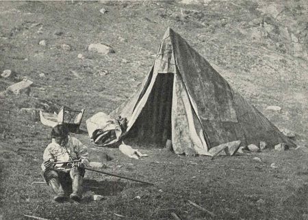 Det er en Skikkelse, man ikke let glemmer, denne Nordbohøvding, som under Forfølgelserne i sin Fortvivlelse maa kaste sit eget Barn fra sig i Søen, for at det ikke skal falde i Skrælingernes Hænder. Om nu Fejderne mellem Ungertok og Skrælingerne kun er en enkelt Episode, eller der har været mange lignende, kan ikke positivt oplyses, men det sidste er det rimeligste. Paa den anden Side er det utænkeligt, at Eskimoerne systematisk skulde have udryddet Nordboerne, Gaard efter Gaard og Fjord efter Fjord, ligesaa vel som at de skulde have bekriget dem i store samlede Fægtninger. De fleste Gaarde er sikkert opgivet af Nordboerne selv, efterhaanden som Befolkningen skrumpede ind. Vi har i de senere Aar udgravet en Række af de største Gaarde i bægge Bygder, og ved ingen af dem kan det godtgøres, at Husene er ødelagt ved Ild, som kunde vidne om den Art Mordbrand, der skildres i Sagnet om Ungertok. Kun paa Sandnæs i Bunden af Ameragdlafjorden, Nordboernes Lysefjord, en af Hovedgaardene i Vesterbygden, laa der i Rummene saa mange tildels ufærdige Redskaber og Inventar, at man maa tænke sig Gaarden ret pludselig forladt eller ødelagt.