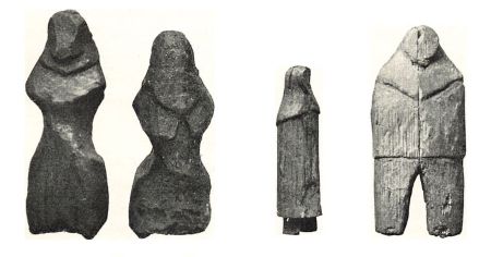 Først faar vi en mærkelig Oplysning. I Sommeren 1266 havde man ude i Havet — snarest udfor Østerbygden, men det siges ikke udtrykkelig hvor — fundet Træ med Hugmærker af smaa Økser eller Tengsler (Tværøkser af samme Art som dem, Eskimoerne siden har benyttet) og ogsaa et Stykke, hvori der sad Kiler af Tand og Ben (til Spaltning af Træet). Vi kan forestille os, hvilken Opsigt dette Træ har vakt, og maa selv ligesom de gamle Præster spekulere over, hvor det kom fra, og fra hvilket Folk det stammede. Efter Strømforholdene maa det være kommet østenfra. Men boede der Mennesker her? Dr. Therkel Mathiassens Undersøgelser i 1932 har oplyst, at den egentlige, store eskimoiske Indvandring til den sydlige Østkyst først er sket 1 á 2 Aarhundreder senere end 1266, men der kan paa Østkysten muligvis have levet Rester af oprindelige eskimoiske Indvandrere fra før Erik Rødes Tid; paa Grund af Landsænkningen er der ikke meget Haab om at finde Spor af denne Kystbosættelse mere. Nordboer paa Island eller Grønland kan Træet sikkert ikke have stammet fra, da de vilde have brugt Kiler af Jærn eller Bronze; men muligvis er det fra langt fjærnere Egne, — det kan være kommet helt ovre fra Nordsibirien.