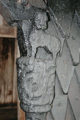 Eidsborg stavkirke.Løvefigur ved portalen til kirkens svalegang. Tokke kommune, Telemark