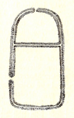 Hedningernes Gudsdyrkelse bestod hovedsagelig i Ofringer paa et indviet Offersted, som kaldtes Vi (Helligdom, jfr. Viborg, Helligdomsbjærg), hvor der fandtes et Tempel, et større eller mindre. De større Templer kaldtes Hov, de mindre Harg. Her nød enhver Gudernes Beskyttelse, og kun vaabenløs turde man indtræde i Helligdommen. Den, der krænkede Stedets Hellighed, betragtedes som »Varg i Vi« (Ulv i Helligdommen) og straffedes med høje Straffe. Der findes omtalt meget store Templer, af indtil 120 Fods Længde og 60 Fods Bredde, og man har paa Island udgravet Grundvoldene af flere Gudetempler, der giver nogen Forestilling om deres Plan (Fig. 2) Templet bestod af tvende Dele, et større firkantet Langhus eller Hal og et mindre Afhus eller »Guderum« med rundbuet Gavlvæg og et hvælvet Kuppeltag, som kaldtes Huve. Langhuset (Hallen) var indrettet som en Festsal, og her fandtes der mægtige Højsædessuler med udskaarne Gudebilleder, og i dem var der anbragt Nagler, som kaldtes Gudenagler (jfr. Romernes clavi sacri). I Afhuset, som var det »allerhelligste« og hvortil antagelig kun Tempelpræsten havde Adgang, var der et Alter, som var gjort med stor Kunstfærdighed og paa Overfladen beklædt med Jærn. Paa dette Alter brændte der en hellig, evigbrændende Ild, som aldrig maatte gaa ud, og rundt om Alteret stod Gudebillederne paa en Forhøjning eller en høj Bænk.