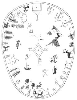 Denne trommen ble publisert i Erik Johan Jessens "Afhandling om de Norske Finners og Lappers Hedenske Religion", 1767. Trommen ble beskrevet og drøftet i Læstadius' "Fragmenter i Lappska Mythologien" (1838-45), og er også en del av motivet på det norske Læstadius-frimerket fra 2000. (Erik Johan Jessen, 2011. Commons.[1] Se II. Forklaring Over den Runeboms Caracterer, som ved hosføyede Kobbertryk.