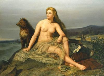 Fil:Jættepigerne Fenja og Menja male guld til Frode Fredegod . 1906.jpg Jættepigerne Fenja og Menja – (Kristian Zahrtmann, 1906)