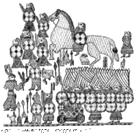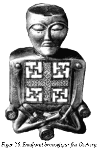 Jeg fortolker figur 28 således, at valhaltroen aldrig slog rigtigt igennem i Vestdanmark. Her dyrkede flere høvdingefamilier stadig de gamle vaneguder. Vanetroen viser sig ved begravelse i skibssætninger, som kendes fra hele Norden lige fra bronzealderen. Den største skibssætning er den, Gorm satte for Thyra Danebod i Jelling. Vanetroen viser sig også ved rituelle mankestole, der sad på hestenes ryg ved forårsoptog. Jævnfør det omtalte isablot, som er afbildet på billedvævningen fra Oseberg. Der er fundet tre kostbare mankestole fra 900-tallet i Vestdanmark.