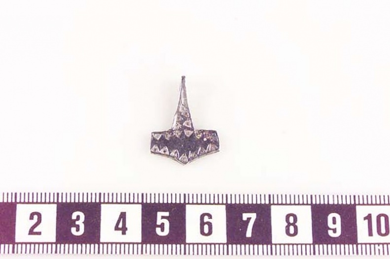 Torshammer laget av sølv, funnet i Gärdslöv, Assartorp, Skåne.