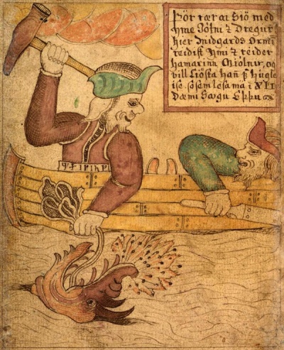 Da sagde Gangtræt: »Det er store hændelser, jeg her har hørt om. Det er et meget forunderligt værk og behændigt udført. Hvordan var jorden indrettet?« Da svarede Høj: »Den er ringformet yderst, og dér udenom ligger det dybe hav, og ved disse strande mod havet gav de jætteslægterne land til beboelse. Længere inde på land byggede de et fæstningsværk rundt om verden til beskyttelse mod jætterne. De brugte jætten Ymers øjenvipper til deres befæstning, og de kaldte den borg Midgård. De tog hans hjerne og kastede den i vejret og skabte dermed skyerne, som det fortælles her: