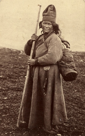 Samisk kvinde med spædbarn, Nordsverige, 1868