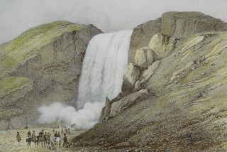 Skógarfoss. Illustration af A. E. F. Mayer, (1805-1890). Kilde: Íslandsmyndir Mayers 1836 (Billedet her fra 1839)
