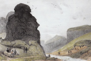 Hörgárgljúfur. Illustration af A. E. F. Mayer, (1805-1890). Kilde: Íslandsmyndir Mayers 1836