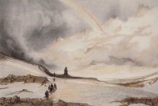 Stafsheiði. Illustration af A. E. F. Mayer, (1805-1890). Kilde: Íslandsmyndir Mayers 1836
