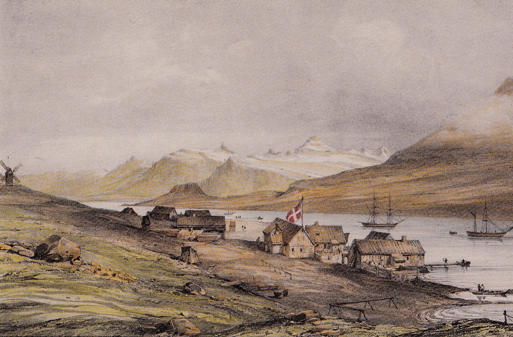 Eskifjörður. Illustration af A. E. F. Mayer, (1805-1890). Kilde: Íslandsmyndir Mayers 1836
