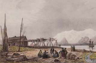 Eskifjörður. Illustration af A. E. F. Mayer, (1805-1890). Kilde: Íslandsmyndir Mayers 1836