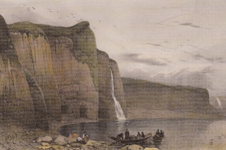 Virkisvík i Vopnafirði. Illustration af A. E. F. Mayer, (1805-1890). Kilde: Íslandsmyndir Mayers 1836