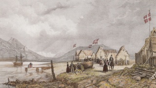 Akureyri. Illustration af A. E. F. Mayer, (1805-1890). Kilde: Íslandsmyndir Mayers 1836