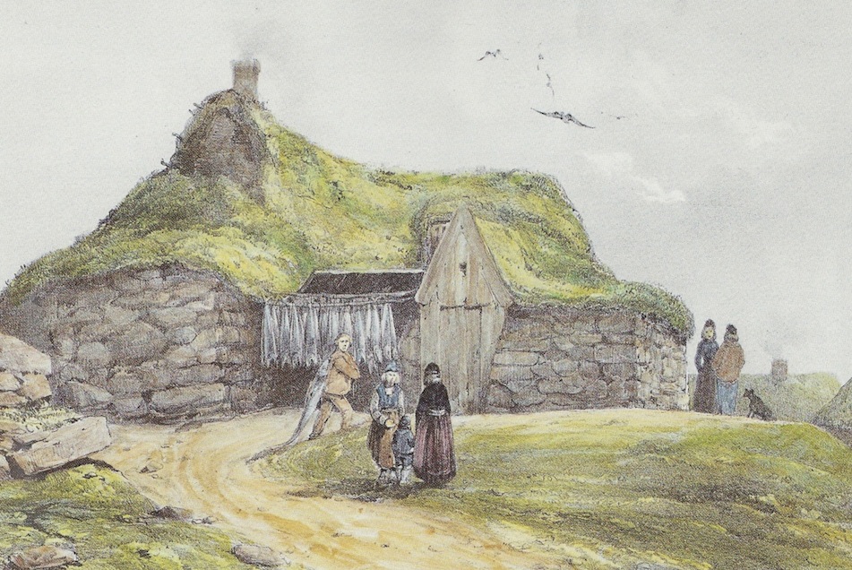 Dagligliv i Reykjavik. Illustration af A. E. F. Mayer, (1805-1890). Kilde: Íslandsmyndir Mayers 1836