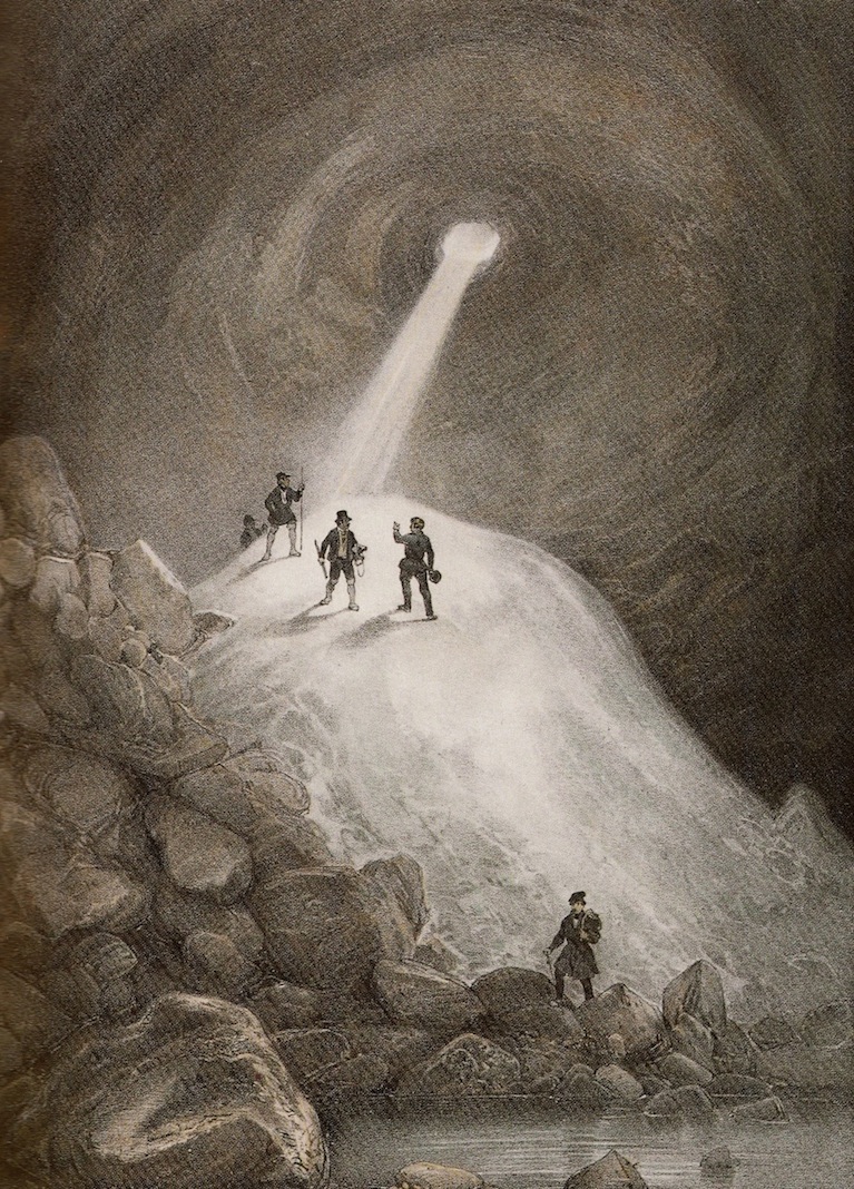 Nede i Surtshellir. Illustration af A. E. F. Mayer, (1805-1890). Kilde: Íslandsmyndir Mayers 1836