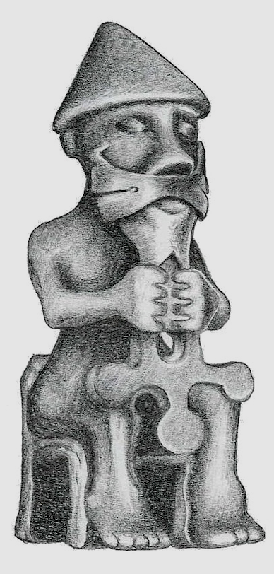 - Billedtekst: Torstatuette, fundet ved Kristness på Island. Her boede Helge den Magre, der dyrkede både Krist og Tor. Figuren er af bronze og stammer fra 900-tallet.