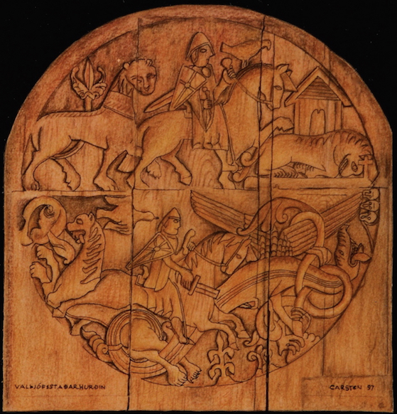 Valþjófsstaðir_døren. Illustration af clm. Copyright: © Carsten Lyngdrup Madsen, 1997