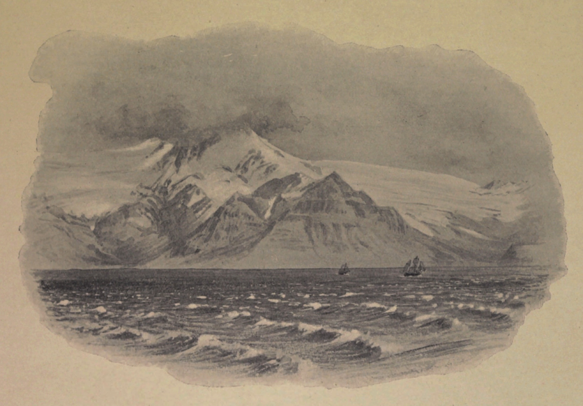 Eyjafell. Illustration af W.G. Collingwood, (1854-1932). Kilde: A Pilgrimage to the Saga-Steads of Iceland, 1899