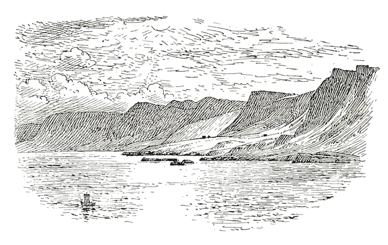 Garpsdalur. Illustration af W.G. Collingwood, (1854-1932). Kilde: A Pilgrimage to the Saga-Steads of Iceland, 1899