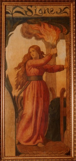- ↑ 21 ride til Tinge, ride til Møde (her brugt om krigersk Sammenkomst). Verset indeholder et Minde om, at Oldtidens Kvinder undertiden deltog i Kamplivet som Skjoldmøer.