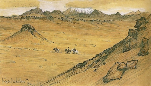 Derefter holdt Hekla sig ualmindelig længe rolig, først 1845 fandt der igen udbrud sted, og dette hører endda til de mindst skadelige. Den udkastede aske førtes hovedsagelig i nordlig retning, en langs Heklas nordvestlige side udflydende lavastrøm voldte ingen ødelæggelse; efter udbruddets ophør fandtes langs fjældets ryg fem kratere, tre stdrre og to mindre. — Uagtet disse udbruds mængde og voldsomhed har de dog i følge deres karakter ikke været til hinder for den underliggende bygds fortsatte bebyggelse; i så henseende indskrænker ødelæggelsen sig til, at et par gårde i sin tid er blevne tilintetgjorte af de udflydende lavastrømme og nogle andre lagte i øde ved den udkastede aske[22]. Men en gennemgående forringelse af den omliggende bygd er derimod bleven bevirket ved det gentagne voldsomme sand- og askefald, der dels straks har ødelagt græs- og skovvæksten på mange steder, dels har givet jordbunden mindre kraft til at modstå stormene og den dermed følgende opblæsning. Dog er den øvre del af Rangåvoldene endnu en forholdsvis begunstiget egn, og selv hvor landet for den mindre opmærksomme betragter ser ud som en ørken, findes ofte ypperlige græsgange for talrige fåreflokke hele året rundt[23].