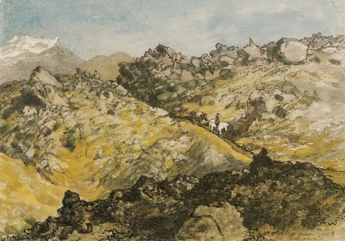 Også fra Ingjaldshol har man en god udsigt til Snefjældsjøklen; den viser sig nu lige i syd, tilsyneladende bredere og fladere, samt med et mere urent anstrøg. Fra Ingjaldshol foretog Bj. Povlssön og Egg. Olavssön den bestigning af jøklen, der er beskrevet i deres rejsebeskrivelse s. 270 ffg. De beskrive jøklens øvre del som stærkt gennemfuret af rævner, deriblandt enkelte overordenlig store; kulden var meget stærk, og jøklens indflydelse på kompasset var så for- styrrende, at dette blev aldeles ubrugeligt. Også i sognebeskrivelsen tales i følge beretning fra en mand, som i året 1821 besteg jøklen, om dennes mange og dybe rævner, i hvilke der hørtes lyden af rindende vand. Jøklens øverste del består af tre spidser, de såkaldte »jøkeltuer«, der dog fra bygden viser sig som kun to. Jøklen er rimeligvis i den senere tid ikke tiltaget, om end vejen over den såkaldte jøkelhals umiddelbart øst for jøklen nu befares sjældnere end før. — De to Næshrepper skilles fra hinanden ved det berygtede fjæld Enne (Enni ɔ: panden), efter hvilket de betegnes som Næshreppen »uden for« og »inden for« Enne. Dette stejle fjæld skyder sig frem mod kysten, sydøst for Riv og Ingjaldshol, begrænsende den lille bygd, der danner den østligste del af den nu beskrevne Næsbrepp. Vejen fører langs søen neden under dette og kan kun passeres ved ebbetid; vel ligger der bag ved fjældet en anden vej gennem den såkaldte Ennesdal, men da den aldrig er bleven ordenlig istandsat, bruges den kun sjælden. Den vestligste del af vejen under fjældet frembyder intet særlig mærkeligt, men efterhånden bliver fældet lodrettere; nederst rejser sig en stejl fjældskrænt, højere oppe luder klipper og store blokke frem, opfyldte med og afbrudte ved fantastisk udhulede grotter og huller, — intet under, at folketroen gør denne del af fjældet til bolig for alvefolket, om hvis færden meget fortælles. Man begynder her at få øjet op for faren ved vejen, der består i, at større og mindre sten af og til løsnes fra fjældet og styrte ned. Senere aftager afstanden mellem sø og fjæld, og nærmest fjældet — den eneste strækning, som her kan passeres, — ligger en banke eller kam af løse, nævestore, vandslidte sten, hvorigennem hestene må trampe, en aldeles utålelig vej; denne strækning, »forvaðinn«, står aldrig under vand. Et parti af denne er den farligste del af vejen, da fjældet oven for her danner en eneste brat skråning, bestående af en temlig løs, gruset klippemasse (sortegul af farve) [14].