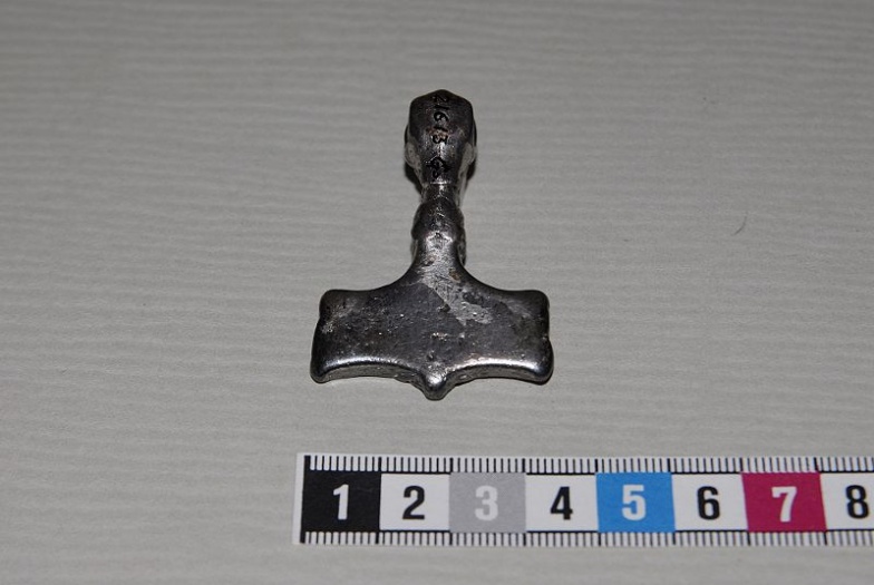 Torshammer funnet i Kviende, Othem, Gotland. Torshammeren lå sammen med andre gjenstander i en skatt: