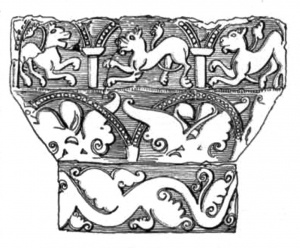 - ↑ Denna datering motivera Andreas Lindblom och Agnes Branting genom hänvisning till typerna av kronor och hjälmar. En annan dateringsgrund förefinns i lejonens likhet med vissa dopfuntsskulpturer, t. ex. den i fig. 2 avbildade, vilket ger ungefärligen samma resultat — 1100-talets senare del eller tiden omkr. år 1200. Jfr Margit Östmans datering av Appunafunten i Roosval, Dopfuntar i Statens historiska museum. Sthlm 1917. s. 48.