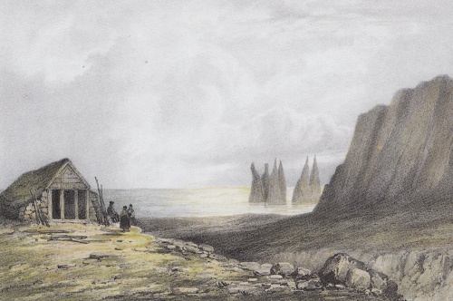 I historisk henseende frembyder denne egn en særlig interesse som skuepladsen for Hjørlejvs død, så vel som for hans forskellige hændelser i den korte tid, denne Ingolvs kække fostbroder nåede at leve som islandsk landnamsmand; men Ldn.’s angivelser om forholdene her i ældre tid er langt fra klare. Først (s. 34) berettes om, hvorledes Hjørlejv landede ved Hjørlejvshøvde, hvor der den gang var en fjord, hvis bund vendte ind mod høvden. Senere hen (s. 272) fortælles, hvorledes, af frygt for landvætterne, ingen havde turdet tage land øst for Grimså (Grímsá) siden Hjørlejvs drab, fø Ölve tog dette land i besiddelse og opslog sin bolig i Høvde (Höfði); dette Høvde er tydelig nok Hjørlejvshøvde, og Grimså svarer rimeligvis til den nuværende Mulakvisl. Mellem Grimså og Kerlingarå var et andet landnam, der tilhørte Sigmund kleykir. Om dette virkelig har været et selvstændigt landnam, må dog synes tvivlsomt, da vi andensteds fra i Ldn. (s. 288) erfare, at Sigmund først flyttede hertil efter at være bleven gift med en søster til Ölves fader, landnamsmanden Eysten Torstenssön, til hvis besiddelser denne strækning, som det vil ses af det følgende, formodenlig fra først af har hørt. Denne Eysten led skibbrud på sin landnamsfart til Island, men slap dog selv derfra med livet og bosatte sig så i Fagredal[24]. Uagtet Fagredal ligger vest for Kerlingardalså, kan han dog ikke have ejet meget land vest for åen, da et andet landnam strakte sig fra Kerlingardalså mod vest. Snarere har han derimod ejet land øst efter. Her kom landet mellem Kerlingardalså og Grimså først ved eller efter landnamstidens slutning i Sigmunds besiddelse, der som født på Island kun uegenlig kan kaldes landnamsmand og sikkert netop på grund af sit giftermål med Eystens søster har fået sig dette afstået af svogeren. I anledning af Eystens skibbrud fortæller Ldn., at en kerling drev i land i Kerlingarfjord (-fjörðr), — »hvor nu Høvdåsand (Höfðársandr) er«. Denne alt på Ldn.'s tid forsvundne fjord er øjensynlig den samme som den, Hjørlejv ved sin landing traf på. Men hvor den har ligget, er vanskeligere at afgøre, da Ldn.'s fremstilling i det ene tilfælde tilsyneladende henlægger fjorden til Hjørlejvshøvde, i det andet nærmest til strøget om Kerlingarå (ɔ: Kerlingardalså). — At der nogensinde har været en fjord ud for Hjørlejvshøvde, er næsten utænkeligt. Først ved Katlas forskellige udbrud i den historiske tid er havet blevet trængt så langt tilbage, at en flad kyststrimmel neden for høvden har dannet sig; og selv om man vilde gå ud fra tilværelsen af en lignende, nogle tusend fod bred sandstrækning på bebyggelsestiden, vilde en sådan kun dårlig give plads for en fjord, hvis fod vendte mod høvden (se Ldn. s. 34—35). Fjorden måtte da i så fald tænkes som et lón, åbent mod sydvest, med den fra havet afgrænsende sandtange udgående fra Hjørlejvshøvde; men sådanne lón, hvoraf adskillige findes i Øster-Skaftafells syssel, er grunde vandsamlinger, uden betydning for skibsfarten og har i det hele kun lidet til fælles med en fjord. — Snarere kunde man forestille sig en lille op mod Høvdabrekke gående fjord, — ligesom da også traditionen vil , at den nedre del af den trange af Kerlingardalså gennemløbne dal i ældre tid har været fjord. (Dalen har egenlig intet navn; »Kerlingardalr« er indskrænket til en lille sidedal eller »hvamm« mod nordøst, hvori en gård af samme navn ligger.) Antagelserne i Ldn. kunde tænkes grundede på en misforståelse opkommen ved forblanding af benævnelsen »høvde«, der jo både ligger i stedsnavnet Hjørlejvshøvde, ligesom også Høvdabrekka skylder en »høvde« sit navn. Høvden, som den af Hjørlejv opdagede fjords bund vendte ind imod, er da kun ved en misforståelse i Ldn. gjort til Hjørlejvshøvde (fortællingen er i det hele ikke her nøjagtig; således kan man ikke, tvært imod hvad Ldn. beretter, fra Hjørlejvshøvde se Vestmanøerne, Reynisfjall skygger for). Høvdåsand, der i følge Ldn. senere begravede jorden, må være fremkaldt ved en jøkelstyrtning fra Katla, der i øvrigt intetsteds omtales; og ved samme lejlighed er da formodenlig den kun fra sammensætningen »Höfðársandr« kendte Høvdå opstået, måske som en langs Høvdabrekkefjældets østside, omtrent i Mulakvisls nuværende leje løbende jøkelåforgrening. — Når Ldn. med hensyn til Sigmund kleykirs landnam angiver, at det strakte sig fra Grimså til Kerlingardalså, »der da faldt vest for Høvde« (hvormed efter sammenhængen menes Hjørlejvshøvde), har man i den tilføjede oplysning vistnok også med et ved forblanding af de to »høvder« opstået unøjagtigt udtryk at gøre. Kerlingardalså kan aldrig have løbet andre steder end vest for Høvdabrekkefjældet.