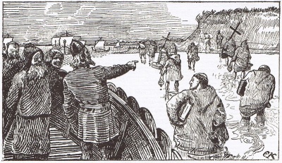 | + | Efter dette vender Knud sig mod Sjælland; han havde da mange folk i sit følge, og dér blev han mødt af de mænd, han havde sendt til Vendland. De fortalte ham den nyhed, at venderne med tak tog imod fred og forlig med kong Knud; de havde samlet en stor hær i landet af den grund, at de ikke mente at kunne stole på ham, og de havde fået at vide, at han agtede sig til Vendland med den store hær, han efter sigende havde samlet; de agtede at være beredte og forsvare deres land, såfremt det skulle blive hærget. Nu sendte de venskabsbud til Knud og lod hædrende gaver følge, og kong Knud blev glad og lettet over disse nyheder. | ||