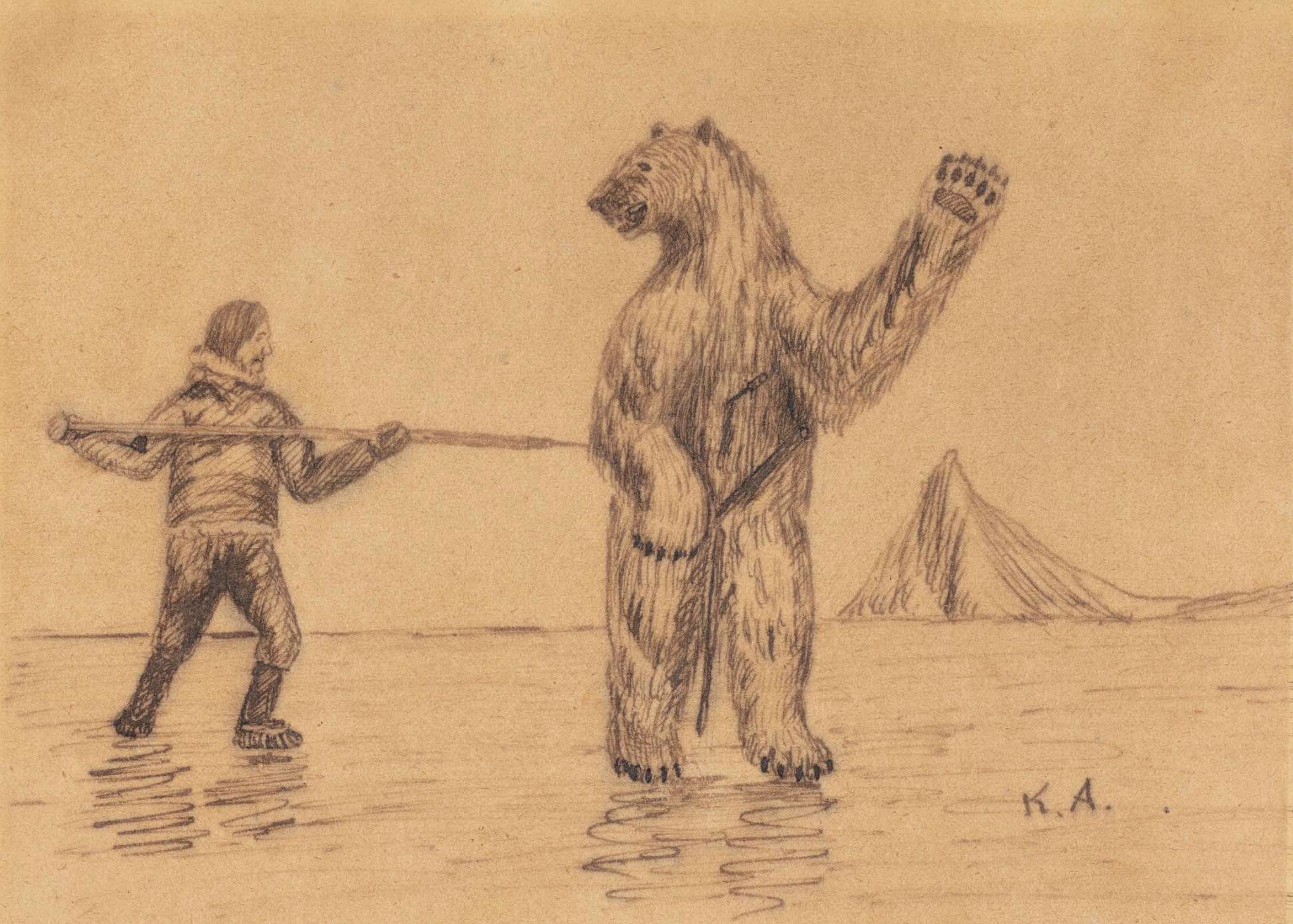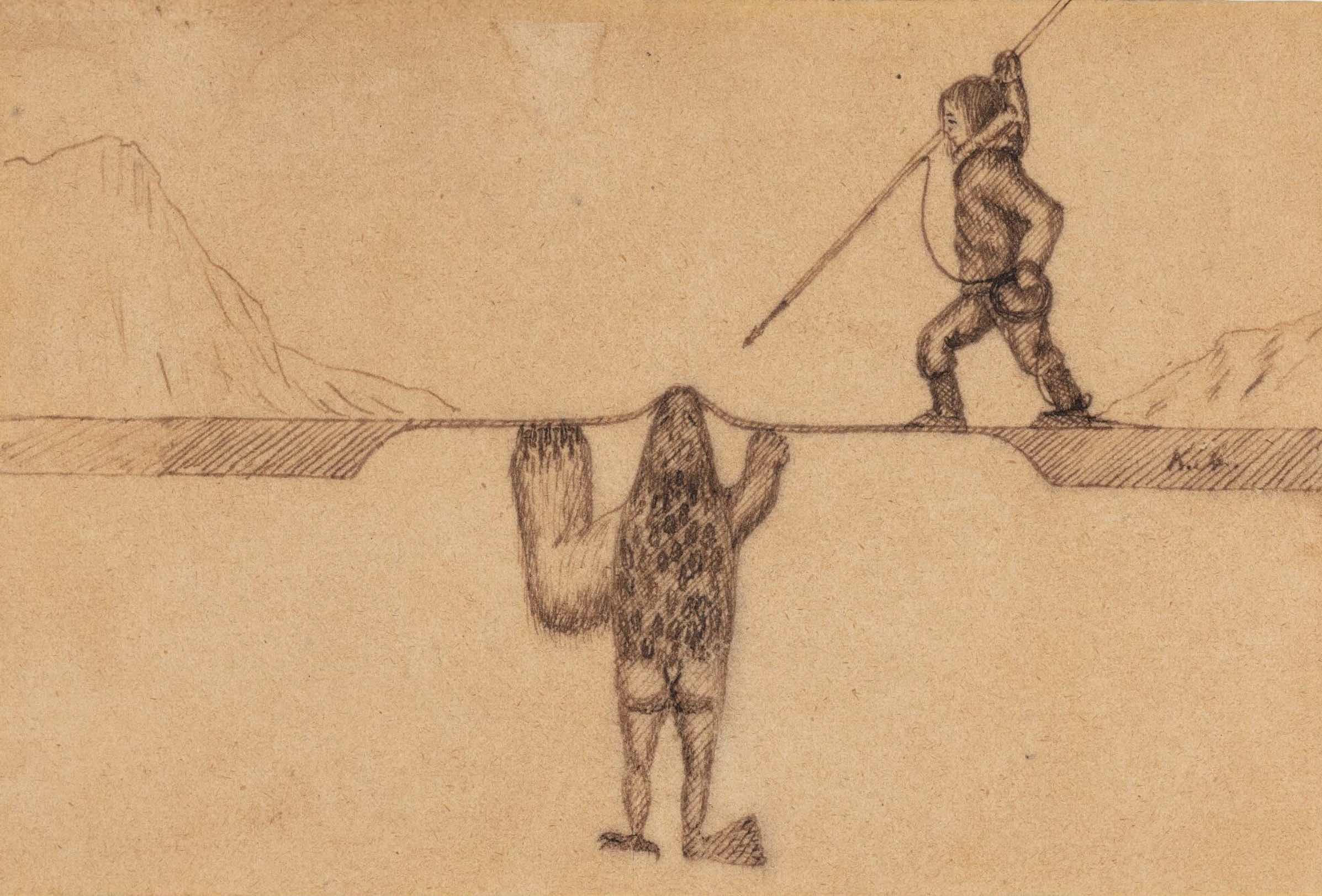 | 26. apr. 2025 kl. 11:58 | Kaarali 38.jpg (fil) | 311 KB | Carsten | == Beskrivelse == Kaarale Andreassen Østgrønlandsk motiv: En fanger løfter sin harpun mod et havvæsen, tupilak, der er halvt sæl halvt sæl halvt menneske og med en bjørneluffe og fugleklo. Kunstner: Kaarale Andreassen (1890-1934) SMK-Open Kategori:Inuitisk religion og mytologi Kategori:Kaarale Andreassen | 1 | |