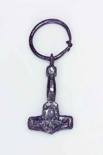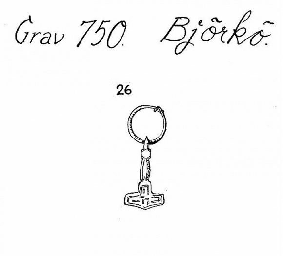 Torshammer fra Hemlanden, Björkö, Adelsö, Uppland. Torshammeren ble funnet ved Hjalmar Stolpes undersøkelse på Birka som ble utført i årene 1874-1895.