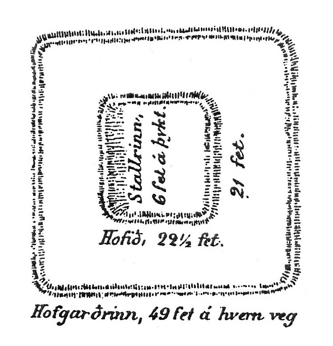 Sigurður Vigfússons tegning af Sæboltomten. Husets mål: 6,5 x 7 m.