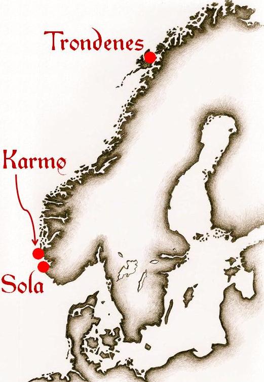Trondenes, Karmø og Sola. Kortbilag til Olav den Helliges saga, kap. 117.