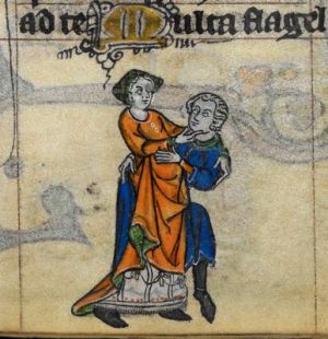 Sydpå i Lombardiet var der en duelig og meget velhavende ridder; han var vellidt og havde en kone og en datter, som var enebarn. Hun var den smukkeste kvinde og dydig i alle henseender. Hendes far og mor elskede hende højt. Jeg er ikke i stand til at fortælle mere nøjagtigt, hvilken by ridderen boede i. I denne samme by var der en ung mand, der må fortælles om; hans far og mor er ikke nævnt, og der forlyder heller ikke noget om, at han var meget rig eller kom fra en fornem slægt, men ikke desto mindre var han en gæv mand. Denne unge mand blev meget forelsket i denne jomfru. Han gik ofte hen, hvor han mente, at han kunne få hende at se, for han levede op til det gamle ordsprog, der lyder, at ‘øjet behages ved det, det ser på.’