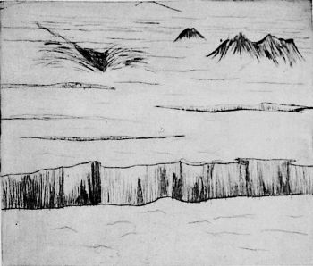 Engang kom jeg op til den store Indlandsis, og da jeg her saa en lille Nunatak, fik jeg den Tanke, at der maaske oppe paa den kunde være noget, der kunde give mig en Oplevelse, og saa gik jeg derop, men saa som sædvanlig ikke andet end Dyr, som jeg plejede at møde inde i Landet. Jeg gik omkring derinde og saa mig om overalt, indtil mine Kamiker var saa vaade, at jeg maatte slaa mig ned for at faa dem tørrede. Jeg trak dem af mine Fødder og bredte dem ud til Tørring i Solen, og medens jeg sad og ventede, saa jeg mig omkring og undersøgte nøje Landene og den store Indlandsis. Da opdagede jeg pludselig ind over Indlandsisen en lille sort Prik, der kom til Syne; den kom nærmere og nærmere og var tilsidst saa stor som en Ræv.